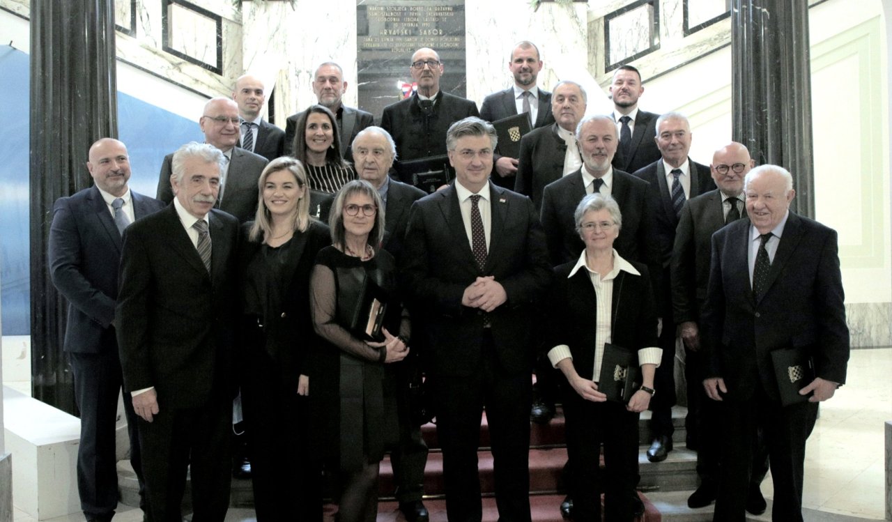 Zagreb, 13. prosinca 2022. - U Hrvatskom saboru održana je svečanost dodjele Državne nagrada za sport "Franjo Bučar" za 2022. godinu, a nagrade za životno djelo uručene su proslavljenom košarkašu Nikoli Plećašu, trofejnom vaterpolistu Bošku Lozici i poznatom splitskom novinaru Edi Pezziju.